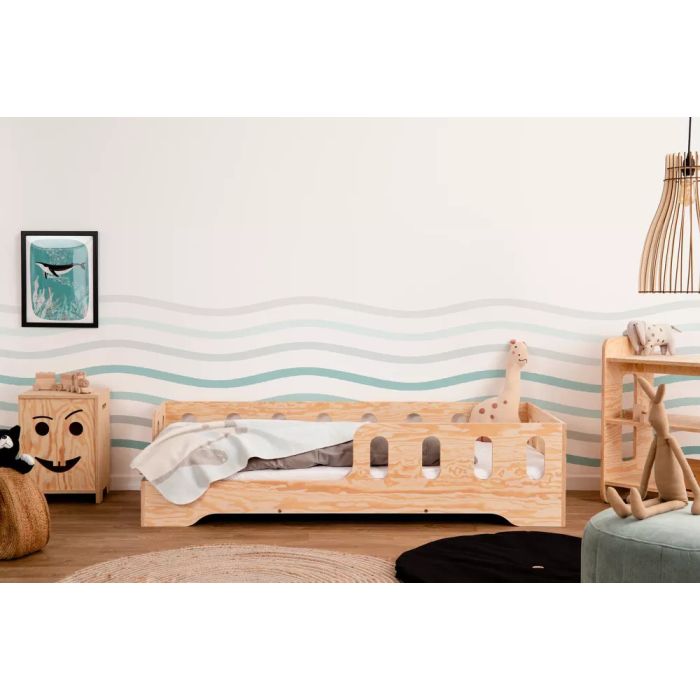 Ebbe low-profile bed exudes the minimalist and timeless charm of Scandinavian design, effortlessly elevating the aesthetic of any child's bedroom. Crafted from high-quality plywood, it emanates a warm and inviting atmosphere while providing a sturdy foundation for your child's restful nights. What sets this bed apart are its safety rails, carefully designed to ensure your child's safety during those transitional years. These sturdy yet unobtrusive barriers offer peace of mind, preventing accidental falls while still allowing easy access for your child to get in and out of bed independently. With this Scandinavian floor bed, you're not just investing in a piece of furniture, you're investing in your child's comfort, safety, and the overall ambiance of their space. Create a nurturing environment where your little one can thrive and dream, all while enjoying the understated elegance of Scandinavian design. Make bedtime an enchanting and secure experience with this exceptional floor bed.