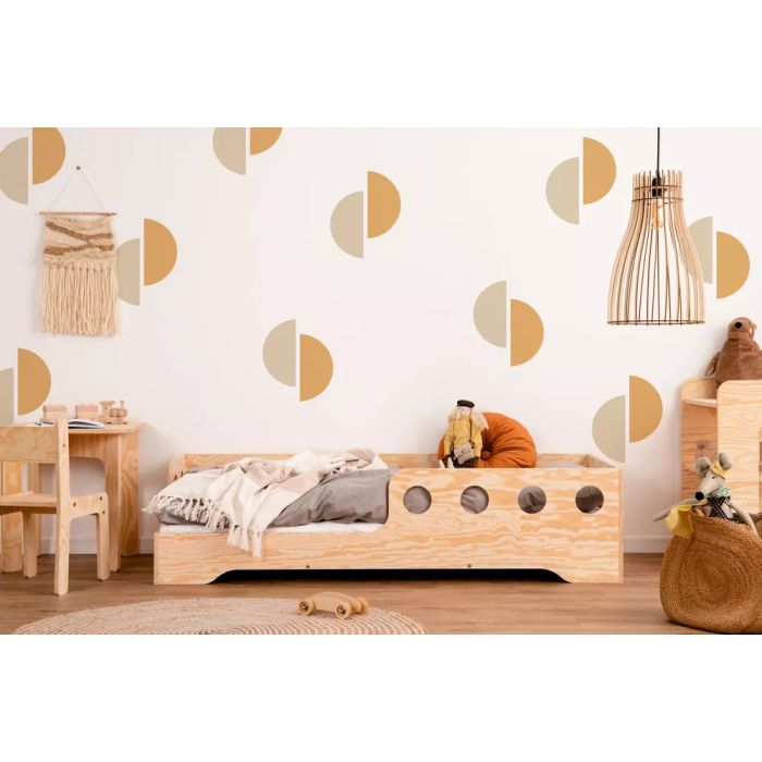 Introducing our Scandinavian Wooden Floor Bed for Kids with Safety Barriers from Ebbe series, featuring a convenient left-hand side entrance. This charming and secure bed combines the timeless elegance of Scandinavian design with thoughtful safety features. Crafted from high-quality pine plywood, it provides a cozy and accessible sleeping space for your child, making bedtime routines a breeze. The low-profile design of the bed ensures that it sits close to the ground, reducing the risk of injuries associated with traditional high beds. This feature also encourages independence as children can safely climb in and out of bed on their own. The bed features easy-to-access design which encourages children to use it without adult supervision and boost their independence. Enjoy peace of mind with the integrated safety barriers while adding a touch of Nordic style to your child's room. Upgrade your child's sleep experience with our Scandinavian Wooden Floor Bed today. Ebbe 5 bed is covered by water paints (one base coat, two main coats of paint). It is safe for children - it does not contain irritants and does not cause allergies.