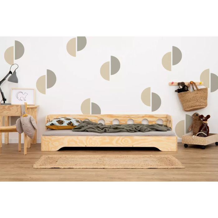 Floor beds provide numerous advantages for kids, making them an excellent choice for parents seeking a safe and practical sleeping solution. By keeping mattresses close to the ground, they offer safety, encouraging independence and reducing the risk of serious injuries in case of falls. Kids can easily climb in and out, fostering a sense of autonomy. Floor beds also promote a minimalist and clutter-free bedroom, ideal for play and creativity. Plus, they can adapt as your child grows, making them a smart investment in your child's well-being and development. Our Ebbe 5s day bed is designed with love to maximize the advantages of a floor bed. It is safe, comfortable and provides a rich functionality. Timeless design of the bed can be easily blended to any kind of room decor without ruining an existing balance. The front side of the bed is open for easy access for a child and allows you to use it as a sofa bed or as a perfect playground during the daytime. Ebbe 5s is crafted of child friendly materials which comply with the highest standards of the EU and UK including water paints which do not contain irritants and are safe for child use.